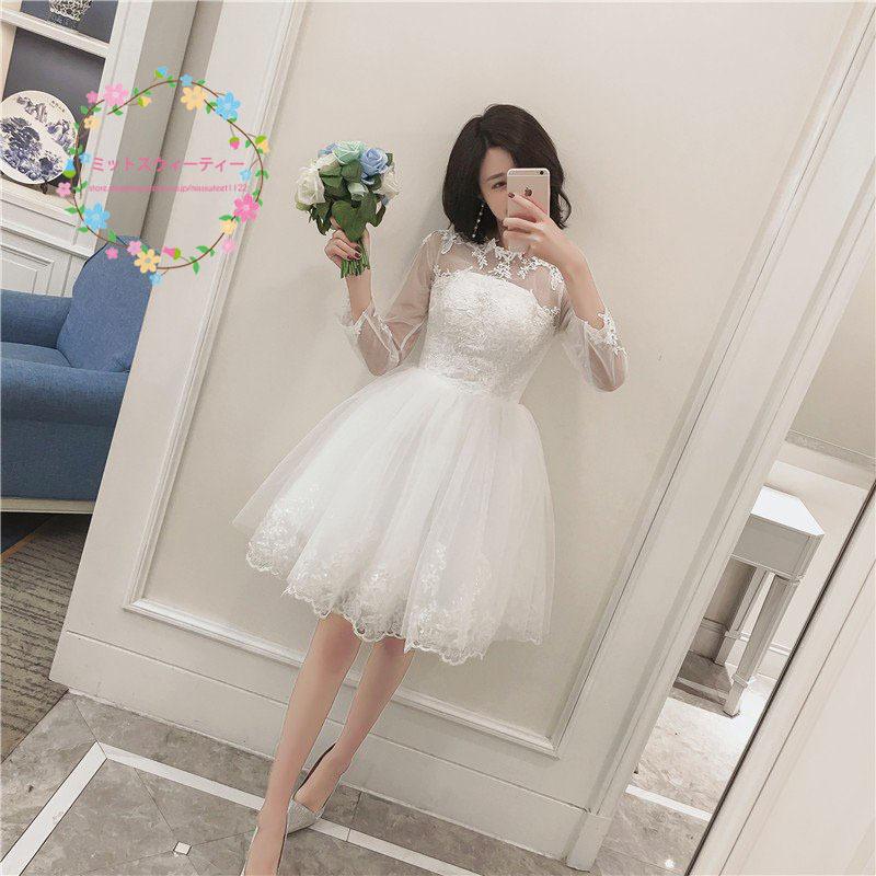 ミニドレス 白 安い ウエディングドレス 長袖 レース 結婚式 ワンピース 発表会 披露宴 花嫁 二次会 パーティードレス ブライダル フォーマル お呼ばれドレス Hsdq015 ミットスウィーティー 通販 Yahoo ショッピング